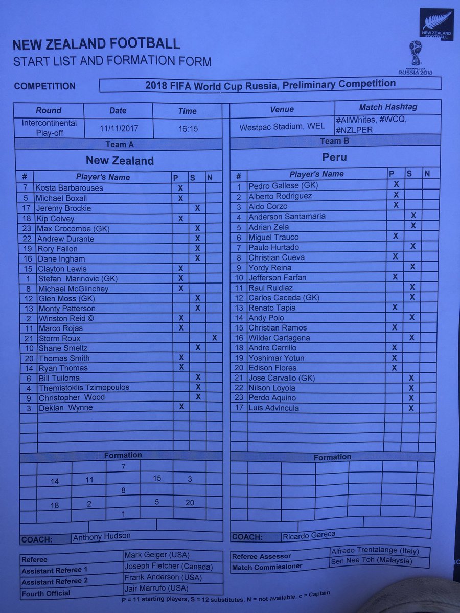 All Whites vs Peru | First leg | Sat 11 Nov | 4:15pm | RoF