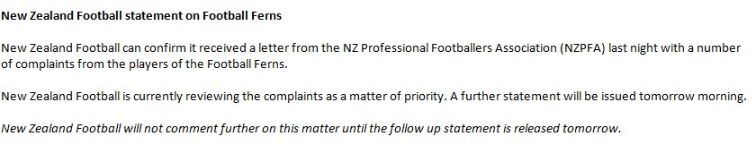 Statement from NZ Football
