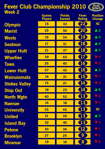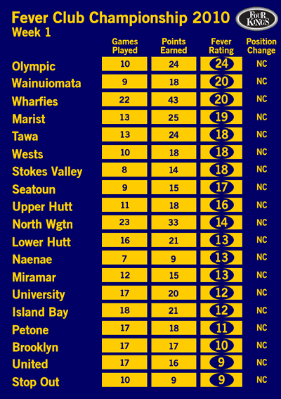 Heaps of movement in week 2, as we found in the inaugural FCC's early stages. Wainui and Miramar getting a reality check and plummeting 7 and 6 places respectively. One of these clubs is too classy to stay in the cellars for long, I'll leave that up to you to decide which one I'm talking about. Stop Out rocketing up the rankings, but they haven't got the personnel to maintain it and if they aren't in last place within 3 weeks they'll definitely be in the bottom three.