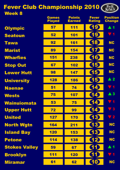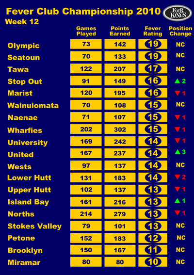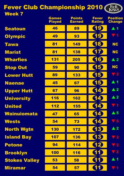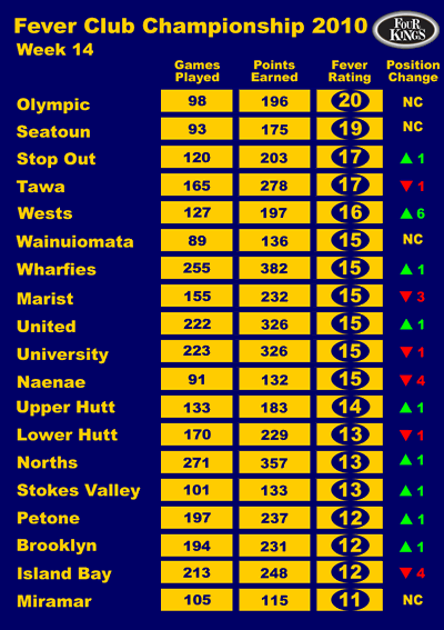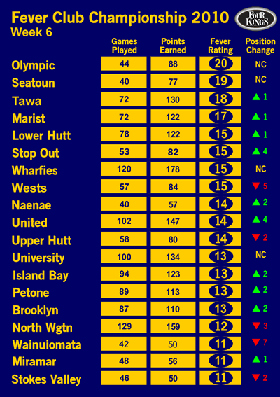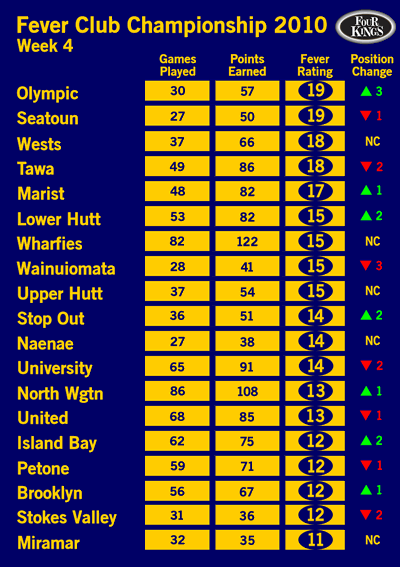 Big news this week is the Bubbles sliding off the top spot to make room for Wellington's number 1 Masters club. Not hurt by the Capital 16 side trampling all in their path (did they slip Capital Football a few dollars to get Fever Club Champs points ??).