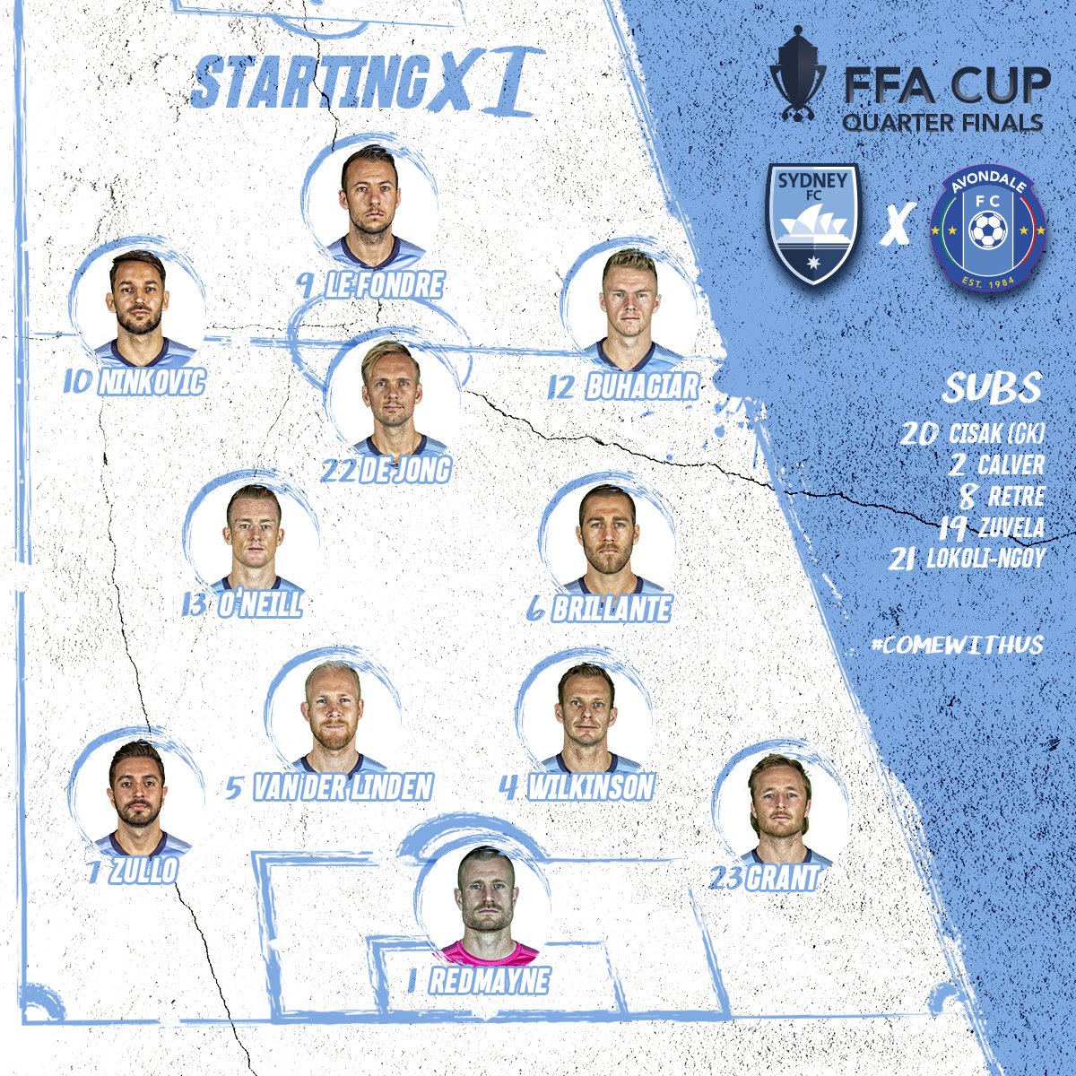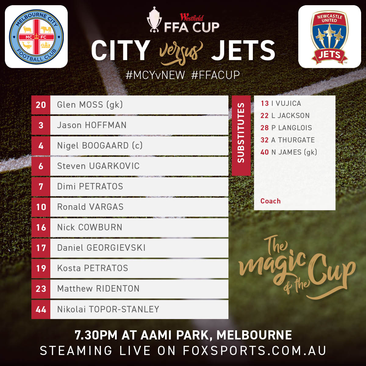 Kosta, Roux & Ingham starting for the Victory in tonight's FFA Cup games as well as Kiwi Fox Slotemaker.