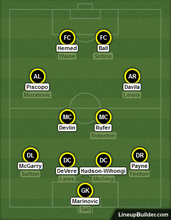 Davila is wasted out wide, he's better closer to goal, as a secondary striker, and more often than not dropping deep as a traditional playmaker. Ball outwide offers energy the whole way up and down the pitch, and with a tendency to move centrally, this allows our best crosser - Payne - to overlap and send balls into Hemed. The left without Libby functions as more of a traditional FB/Winger combo. Piscopo staying wider and not always looking for the overlap. If Piscopo does come inside, Davila drops deeper to cover that hole as he is so good and picking up possession in broken play and making something happen.