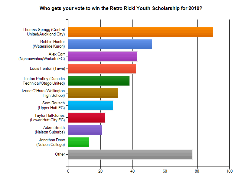 Why should I vote for him over Alex Risdale then who's a holding midfeilder for Nayland, playing at a higher level (Mainland league) and also plays for NZ secondary schools. Alex is also the top 3000m runner for his age in nelson. There's 20 guys who make that Nelson rep side and that's the highest level Jonathan has played? What makes him better than the guys playing u19 football or NZFC? Again what is with this academic thing, surely to get a sporting scholarship he would have to have played at a high level of football first, all he's done his captain an average college team and play first division, they look at the academic side after theyve seen how good he is in the sport to make sure he's actually going to pass or do well at their uni