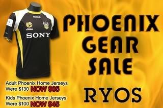 RYOS has a massive sale of Phoenix gear, exclusively for the yellow fever they going to offer everything at absolutely half price!!!, this coming Wednesday evening at their sale shop on Willis street. It will then be available to the general public on Thursday Morning thru our shops however the prices wont be as sharp as what they are going to do for the fever