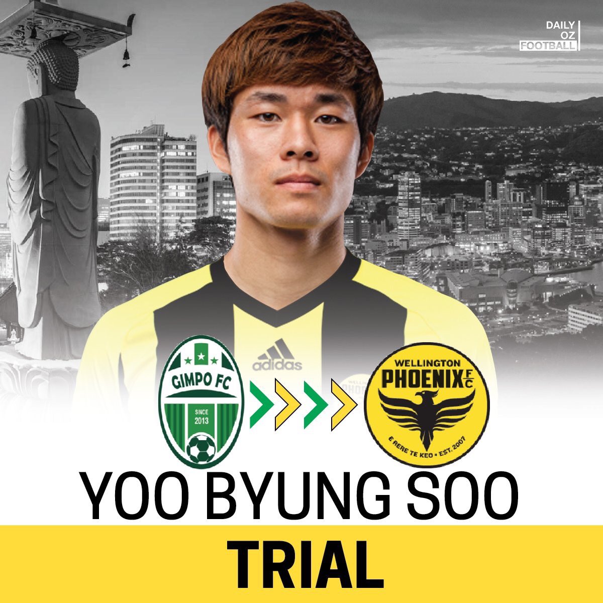 The player on trial Soo Byeung Yoo is 1.83 m (6 feet) compared to average male Korean height 1.7 m (5'7")